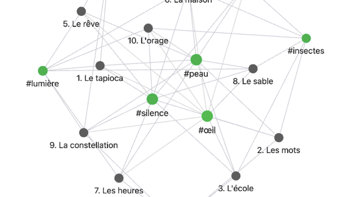 Liste non-exhaustive des thématiques abordées : l’enfance, le jeu, l’écriture, les rêves, les insectes, la mort.